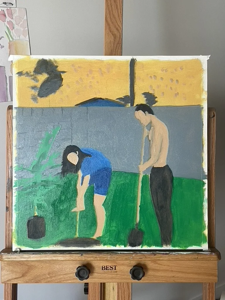 Some of this translated into my painting, but I’m caught staring at the obvious flaws in the figures without knowing just quite how to fix them. I painted my waist and hips at a strange ratio, and my bicep doesn’t make a ton of sense. My neck is also thin and the profile of the face is bizarre. Jacob looks pretty decent, though!