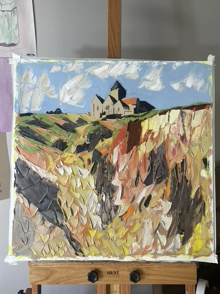I also slapped quite a bit of paint on this Monet-inspired piece: