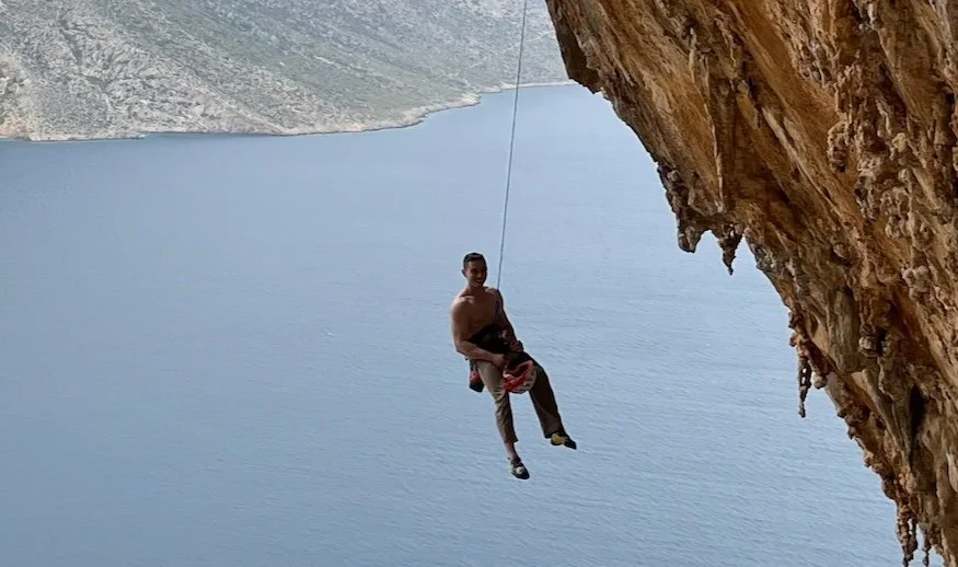 Climbing in Kalymnos. I took a 20’ whip where I almost tore myself a new one.