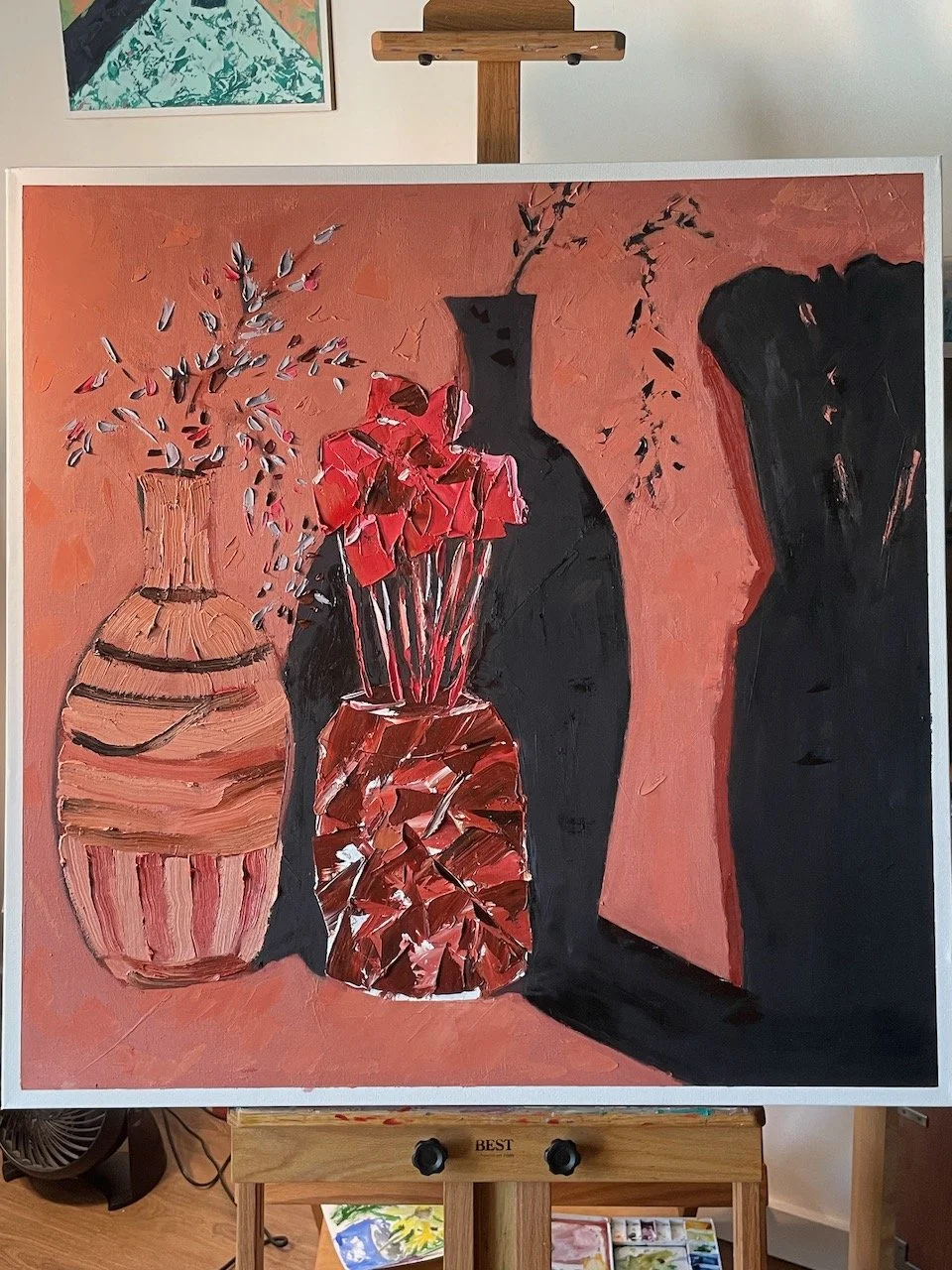 We begin adding some blocking for our vase and flowers.